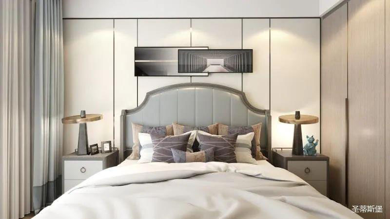 ▲次臥空間主要是以淺色為底調(diào),大面積的莫蘭迪色與淺色相平衡。極強(qiáng)線性裝飾畫帶來的延伸感讓視覺煥然一新。少許的金屬元素?cái)z入,瞬間提升了空間的精致度,將溫潤(rùn)雅致與時(shí)尚輕奢糅合在同一空間里,每一處都洋溢著浪漫的氣息。